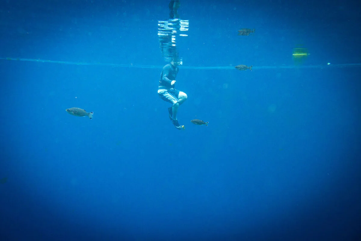 At times the individual trees are indistinguishable as roots and trunks knot together as though they are all part of some primordial gloop that raised up out of the river and petrified. The water is crystal clear and we can see the silty river bed as though we were sitting on glass. Below us are the occasional fish and the abandoned trunk of some kamikaze tree that lies peacefully amid gentle drifting lilies. At some points in our journey we reach an impasse where water-cress has grown free and wild and covers the river surface. Our paddles soon cut through the vegetable soup and we delve further into the interior until we notice that the crystalline water has begun to show hueues of blue that do not reflect the greying sky. Before we realise it, we reach a dead end where the water is now very blue, toilet duck blue. It looks unreal and chemical and it feels achingly cold.